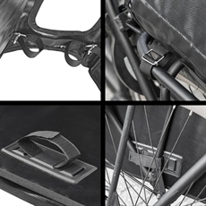 Denne rummelige cykeltaske giver dig 40 liters opbevaringsplads fordelt på de to sidetasker. Det vandtætte presenningmateriale holder dine ejendele tørre i al slags vejr, mens refleksstrimlerne øger din synlighed i trafikken. Tasken monteres nemt på bagagebæreren med justerbare stropper og velcro,.