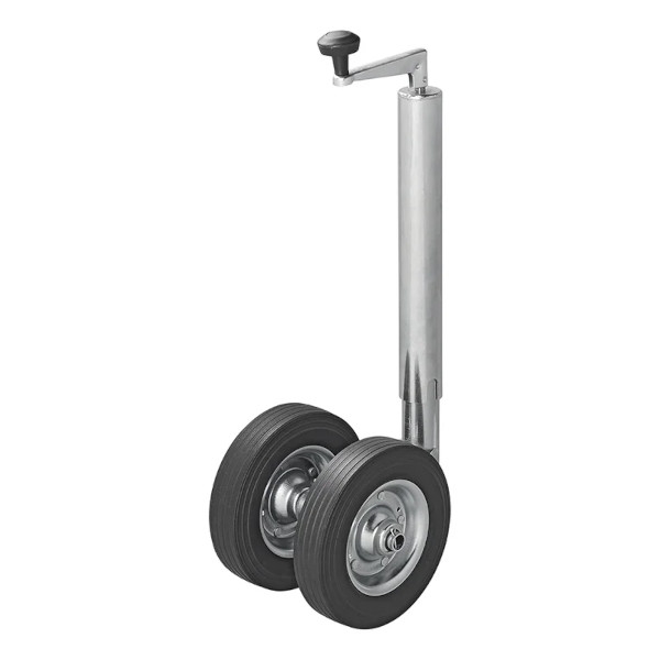 Dette robuste næsehjul med dobbelte, massive gummidæk sikrer optimal stabilitet ved både stillestående og kørende brug. Med en dynamisk belastningsevne på 90 kg og en statisk belastningsevne på 150 kg er det velegnet til både campingvogne og erhvervstrailere. De massive 200 x 50 mm gummidæk eliminerer risikoen for punkteringer.