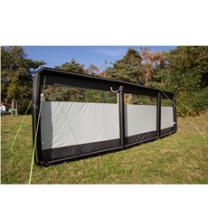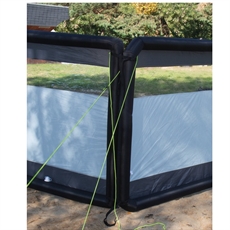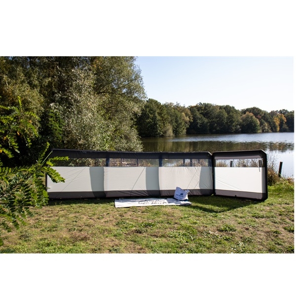 Dette oppustelige læsejl giver effektiv vindbeskyttelse med tre moduler på hver 160 x 140 cm, der tilsammen dækker 480 cm i bredden. De gennemsigtige vinduer i hvert fag sikrer udsyn, mens det holdbare 150D polyestermateriale står imod vind og vejr. Modulopbygningen giver dig frihed til at tilpasse opstillingen efter behov.