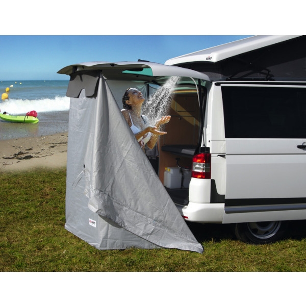 REIMO Instant, Hæktelt til VW T4/T5/T6 er en innovativ løsning for campingentusiaster. Dette smarte hæktelt fastgøres direkte til bagsmækken uden brug af stænger, hvilket muliggør hurtig og nem opsætning. Med sin alsidighed kan det anvendes som badetelt, toilettelt eller omklædningsrum og fungerer også som privatlivsafskærmning. Den lille pakkestørrelse på kun 60 x 20 x 20 cm og den enkle montering gør Instant-hækteltet til det ideelle valg for alle VW-ejere, der værdsætter effektivitet og fleksibilitet i deres udendørsudstyr. Teltet er designet til at være funktionelt og vandtæt under forskellige vejrforhold.