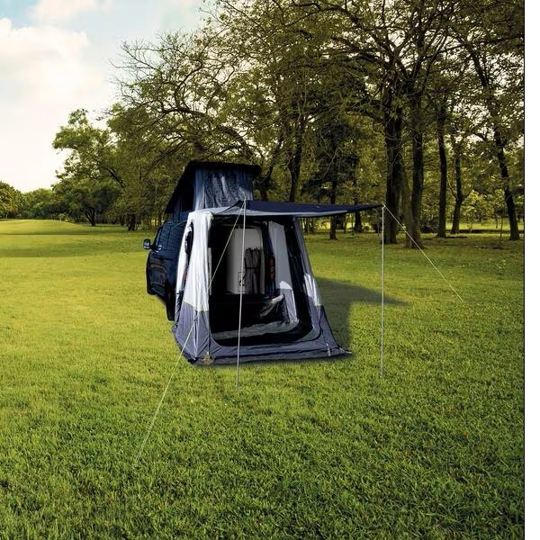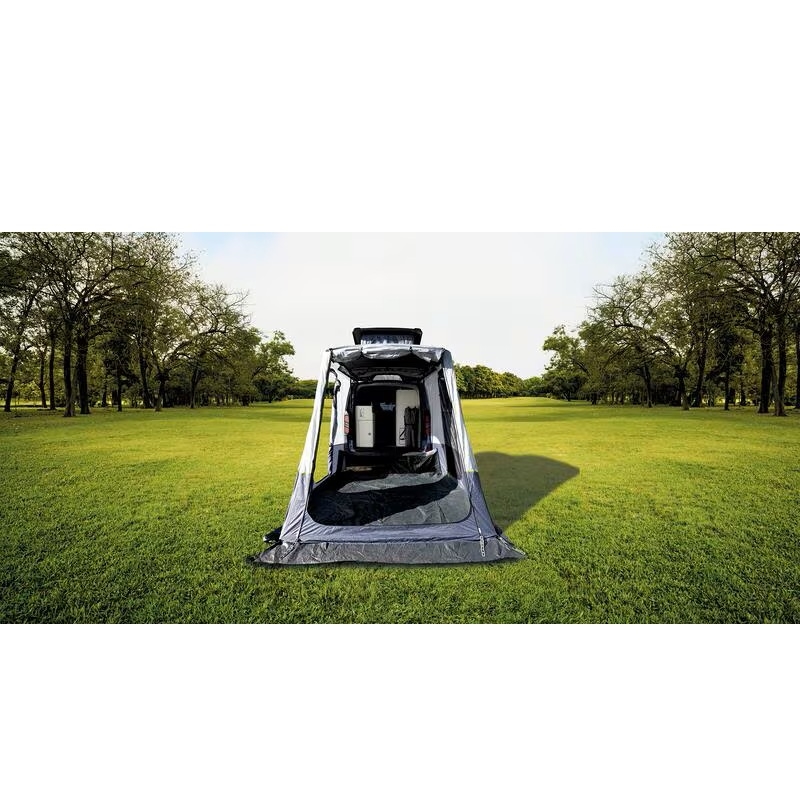 Med integreret myggenet i front- og sidevægge holder du insekter ude, mens ventilation i toppen af teltet sikrer frisk luft. Den lette konstruktion og universale montering med slusegang fra bagenden af bilen gør teltet ideelt til spontane stop eller den længre rejse.
