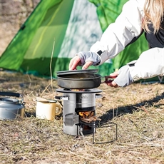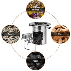 Hvis du ofte finder dig selv uden traditionelt brændstof, giver denne rocketstove dig frihed. Du kan fyre med træ, pellets, blade, grene eller kul - alt efter hvad der er tilgængeligt. Det cylindriske design med topåbning fungerer med dine gryder, pander og grillplader.