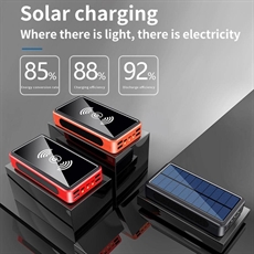 Solar Power Bank 50.000 mAh er en soloplader med stor kapacitet og 4 USB-porte, designet som en bærbar trådløs oplader med faldsikker konstruktion og LED-lys til camping. Denne Qi-bærbare soloplader er optimeret til udendørs sport. Den fungerer både som solcellebank og trådløs bærbar oplader, kompatibel med alle Qi-understøttende enheder. Den trådløse funktion eliminerer sammenfiltring, hvilket gør den ideel til aktive brugere.