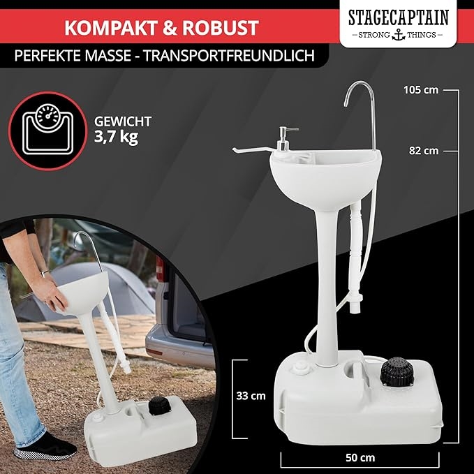 • Inkluderet i pakken: håndvask med 17L tank, fodpumpe, spildevandsslange