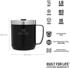 Denne klassiske termokop er velegnet til lejrbrug og holder kolde drikke kolde i op til 3 timer og varme drikke i op til 1,5 timer. Det betyder, at du kan nyde en varm te eller kaffe i den tid du skal bruge på at drikke den, i stedet for at vende tilbage til en lunken drik. Det praktiske top låg sikre at der ikke kommer andet i koppen end din drik. Den er fremstillet af 18/8 rustfrit stål og BPA-fri plast, så den tåler både det hårde liv på tur og opvaskemaskinen.