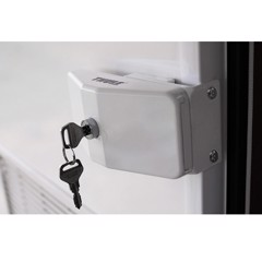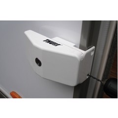THULE Door Frame Lock er en rammemonteret dørlås i høj kvalitet, der forhindrer indbrud i autocampere og campingvogne. Den robuste konstruktion i pulverlakeret aluminium gør låsen holdbar. Rammelåsen muliggør montering uden monteringsplade og betjenes ved at føre den mod venstre eller højre for at sikre dit køretøj.