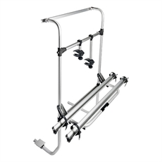 Cykelholder i metal med justerbare skinner og aftagelige arme til køretøjer.